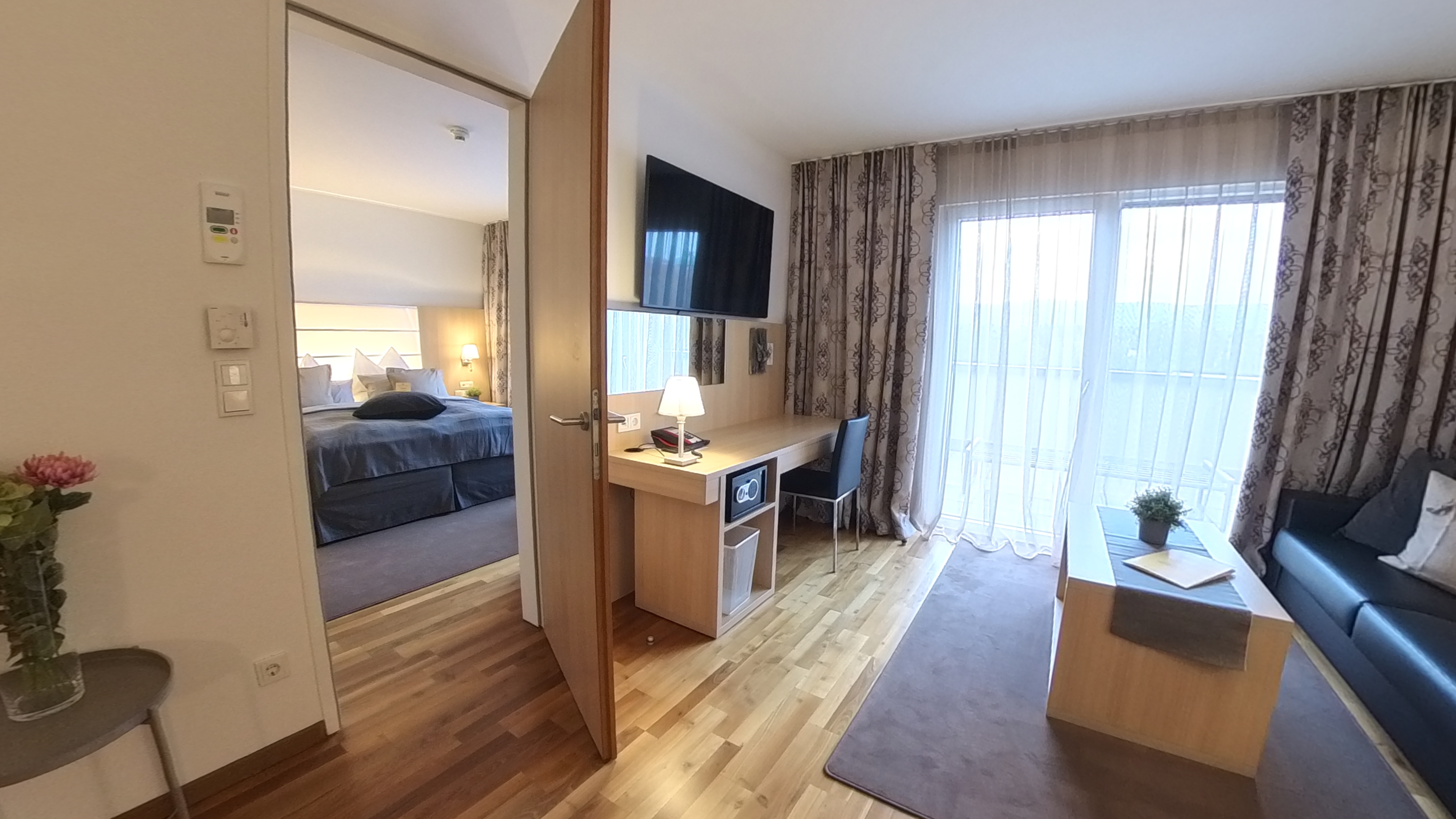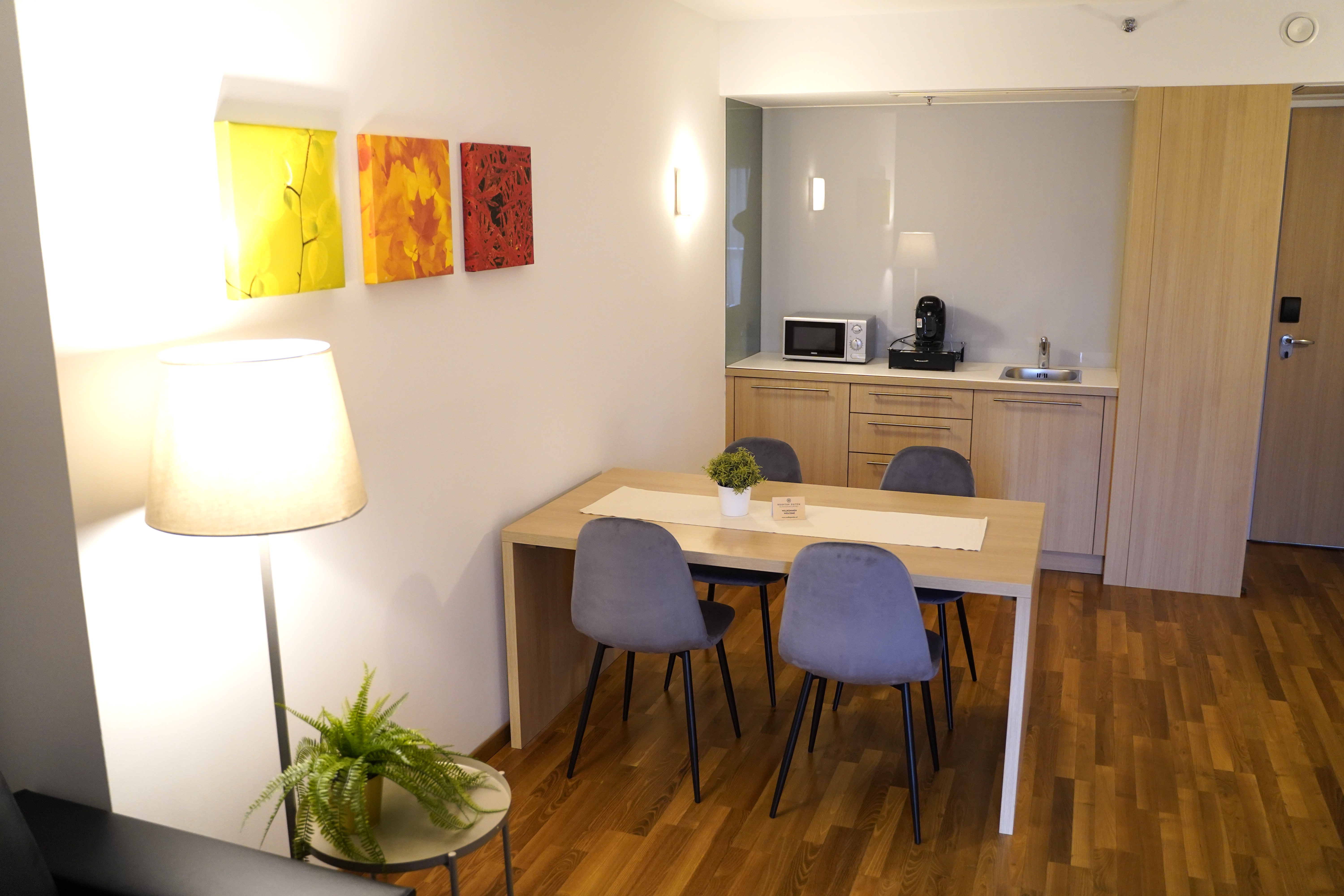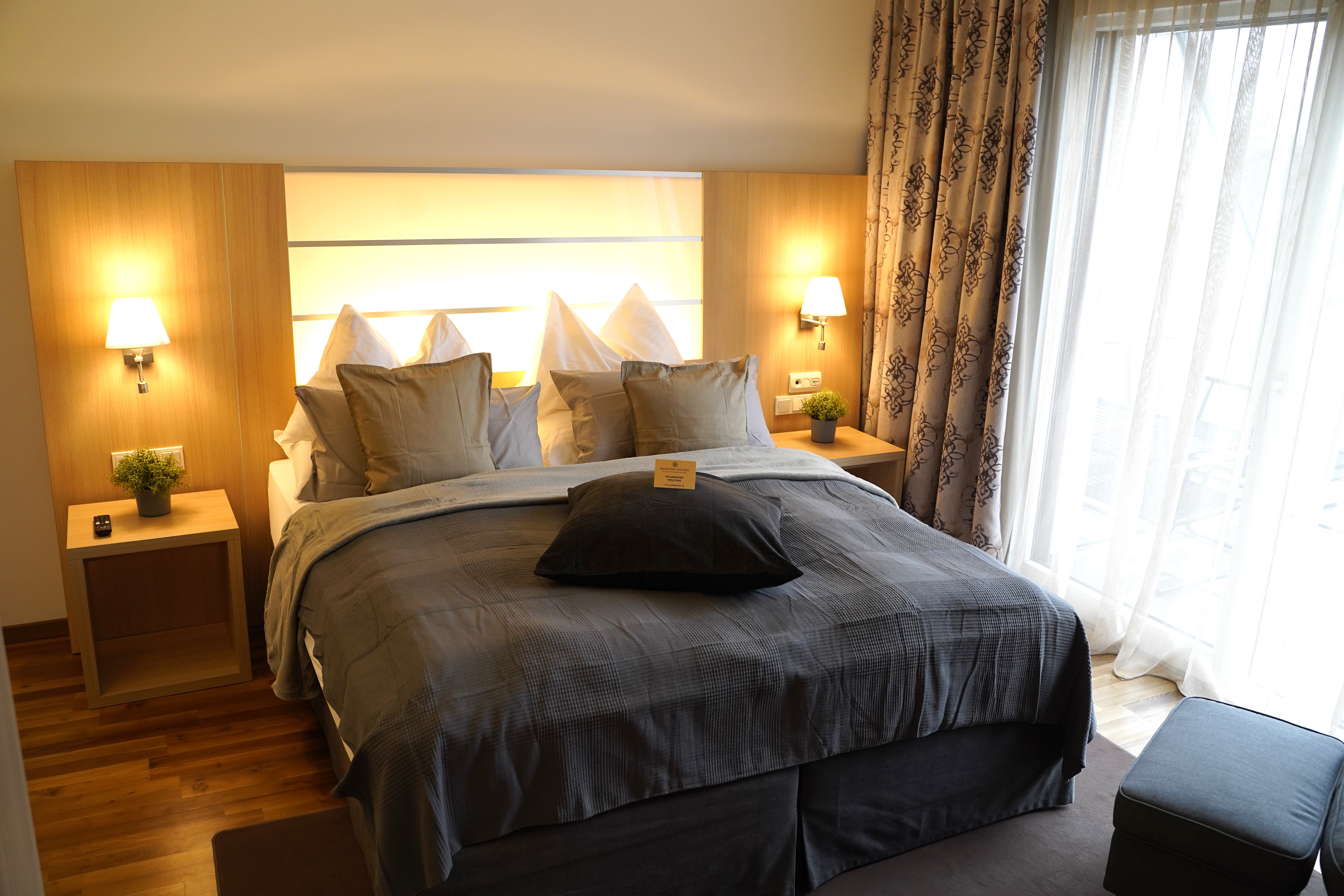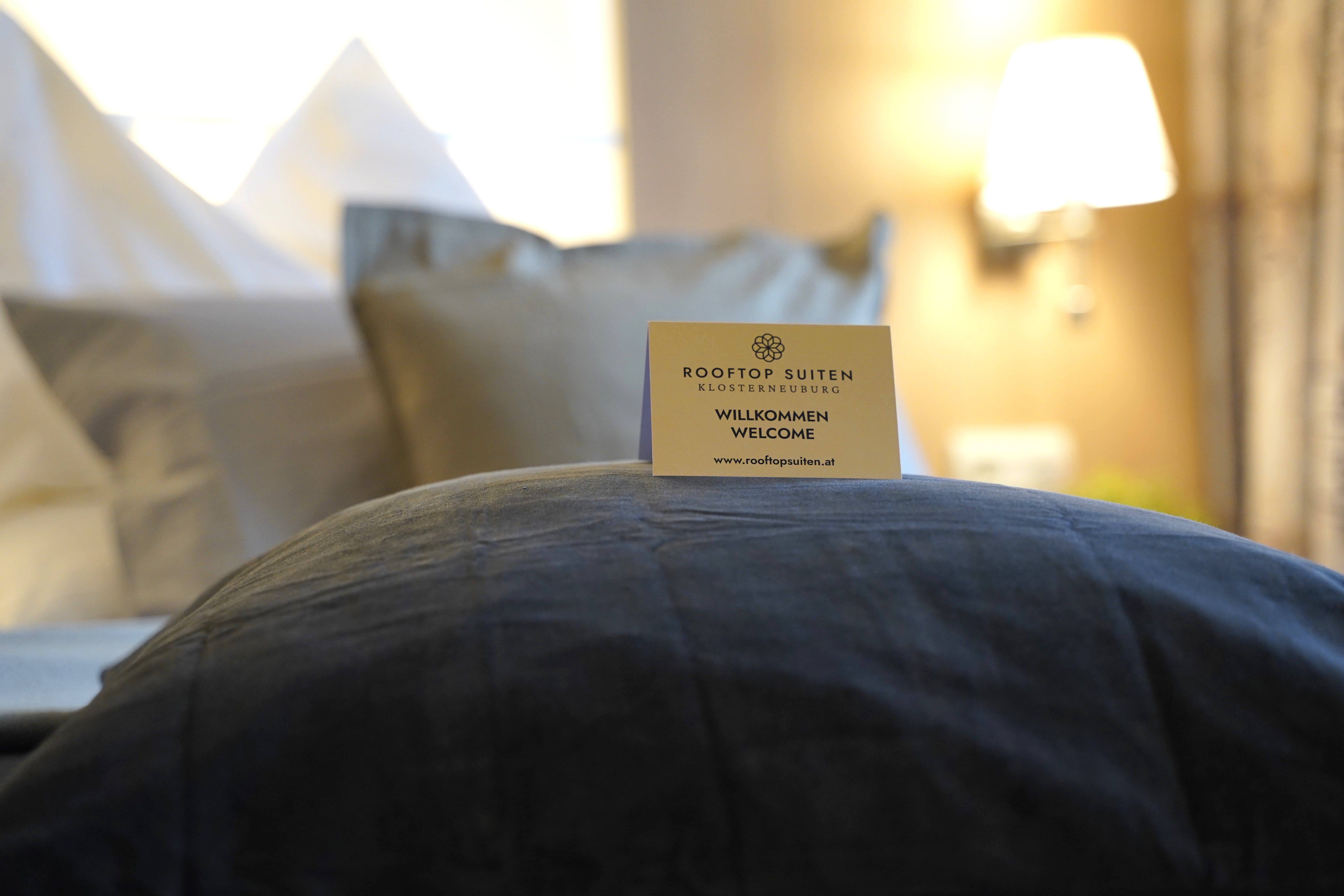Genießen Sie Ihren Hotel-Aufenthalt in den modernen komfortablen Rooftop-Suiten. Jede Suite verfügt auf 52m² Fläche über zwei getrennte Zimmer und eine eigene 22m² große Sonnenterrasse mit herrlichem Süd-Blick auf Donauauen, Wienerwald und Stift Klosterneuburg. Jede Rooftop Suite ist pro Nacht pauschal um EURO 500,- (zzgl. Nächtigungsabgabe, ohne Frühstück) buchbar.